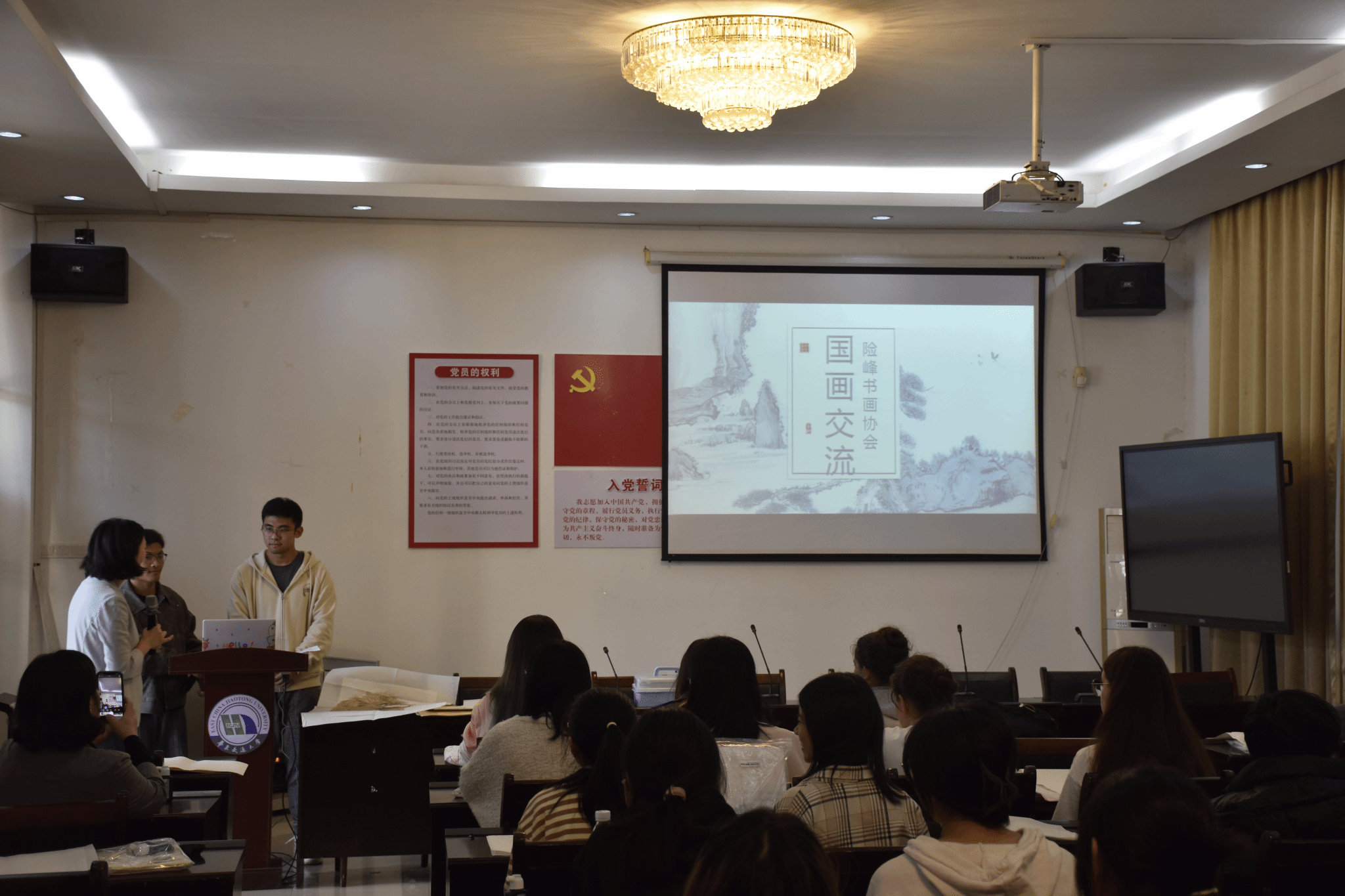 10月25日,best365中国官方网站于教15栋102会议室开展中国传统绘画体验课,本次活动由陈蜻蜻老师主持,险峰书画协会徐锐授课,2022级郭昊协助翻译,2022级英西复语专业员工、2024级职工参加本次活动。