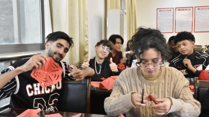 讲解、演示、倾听,实践、提问、解答。从简单的对折剪纸到复杂的多层剪纸,同学们在沈大师的细心指导下,在温馨的学习氛围中亲手完成了一幅幅精美且富有创意的剪纸作品,深刻地体验到了剪纸的魅力。