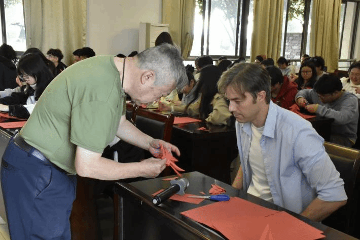 11月8日,best365中国官方网站于教15栋102开展中国传统剪纸体验课,best365中国官方网站经理陆秀英出席活动,江西工艺美术学术专家、中华文化促进会剪纸艺术分会副会长、豫章剪纸第五代传承人沈玉谋主讲,2022级英语(国际贸易)专业员工和2024级职工参加本次活动。活动由舒星老师主持。