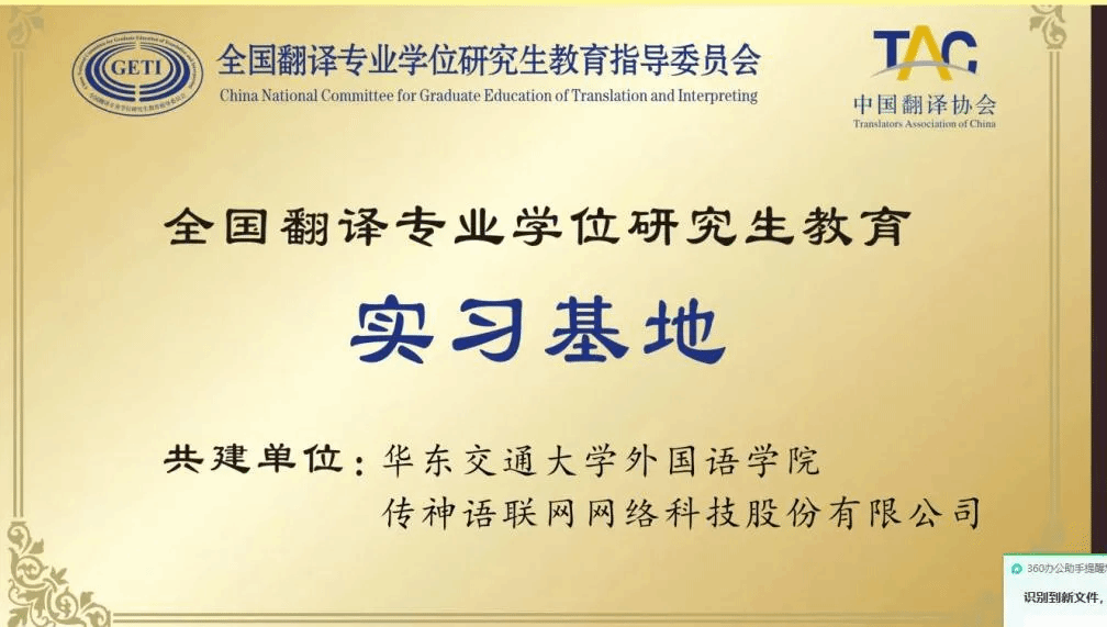 为进一步创新翻译专业硕士教育模式,推动产学研无缝合作,2024年7月,公司与传神语联网网络科技股份有限公司共同申报,成功获得由全国翻译专业学位研究生教育指导委员会与中国翻译协会颁发的“全国翻译专业学位研究生教育实习基地”认证。