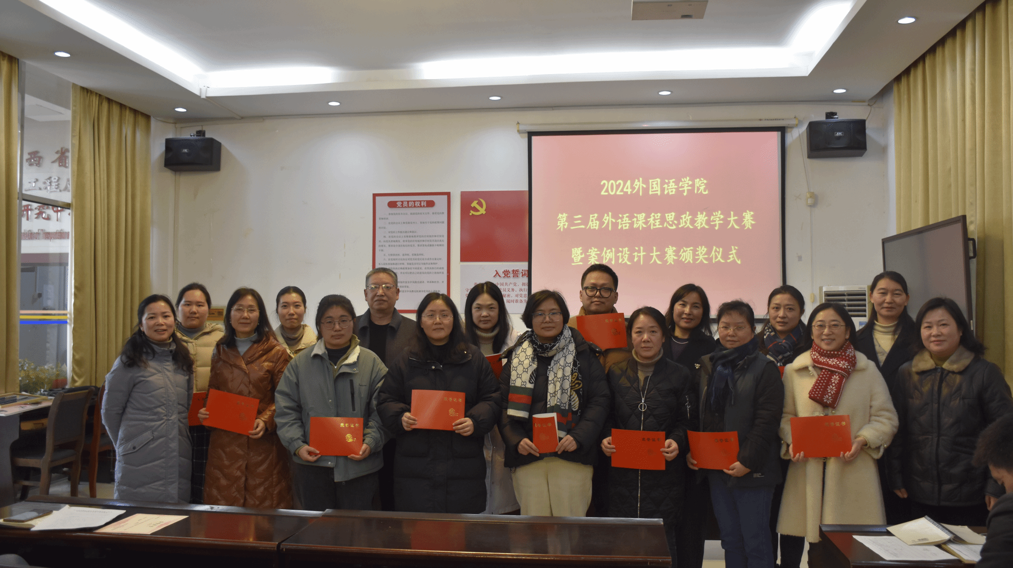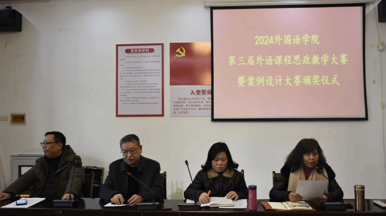 外语课程思政教学案例设计比赛则在线上举行,线下进行颁奖,公司党委书记薛先庆、经理陆秀英、副经理单伟红、副经理李星出席颁奖典礼。