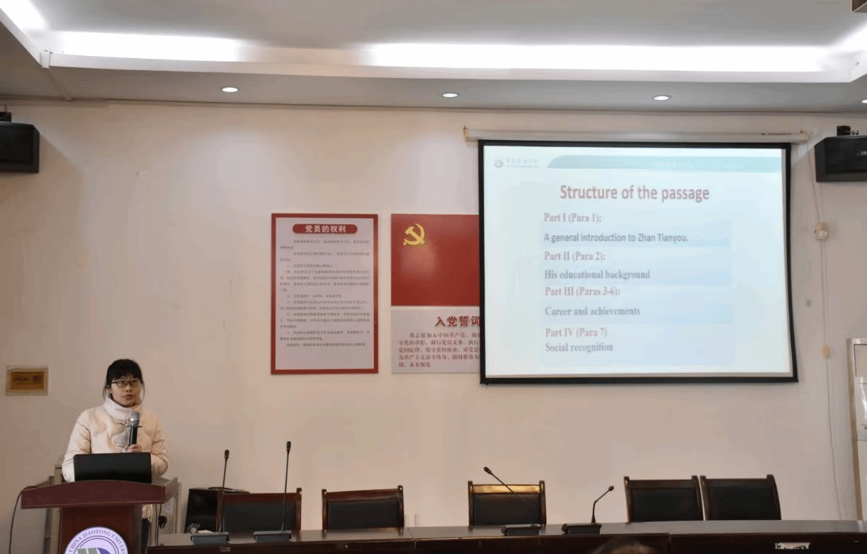 比赛现场,参赛选手们将外语学院特色与学校交通轨道特色相结合,利用不同学科的交叉融合,用鲜活的实例,生动的语言,带来了独具外语人特色的课程思政教学。舒星老师聚焦于美国建立,通过探讨美国独立战争从而突出了内部团结、国家自豪感以及国际合作的重要性:吴让越老师充分展示了中国在铁路领域的进步,通过双层列车的案例,强调了其在促进民族文化交流中的作用;吴双老师的课程涵盖隧道和桥梁知识,锻炼员工批判性思维及语言能力,充分提升了员工的国家认同感和民族自豪感······