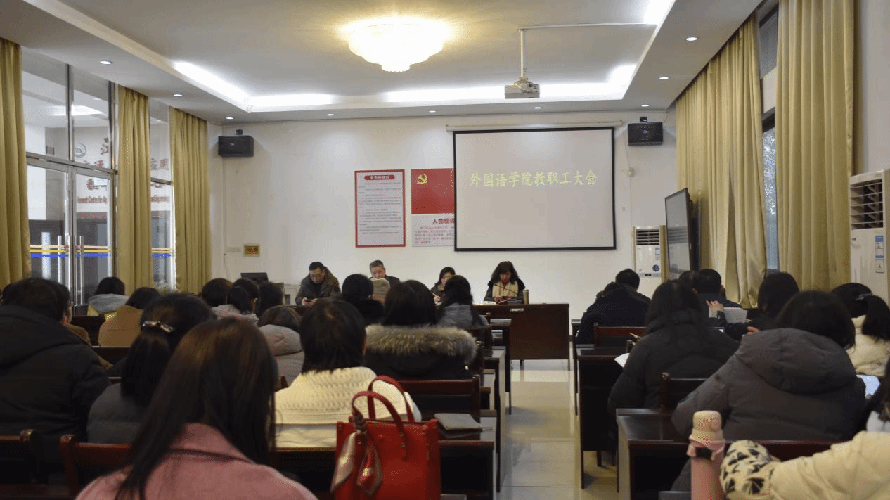 陆秀英经理以一个诙谐的开场白开始本次大会。她以“白加黑”“报告加报告”形容了今年个人及全院工作的繁忙,并感谢全体教职工的支持与努力使公司今年在教学工作、创新创业、对外合作等诸多方面取得了显著进步。今年公司在竞赛方面成果斐然,四位老师及其团队在外教社杯、外研社杯等国家级竞赛中获奖,获得大量各级表彰。在赞扬公司今年的成就之余,她也提到了尚有进步空间之处,最终以“轻舟已过万重山”勉励大家,希望大家更加努力进步,“坚持就是胜利”。