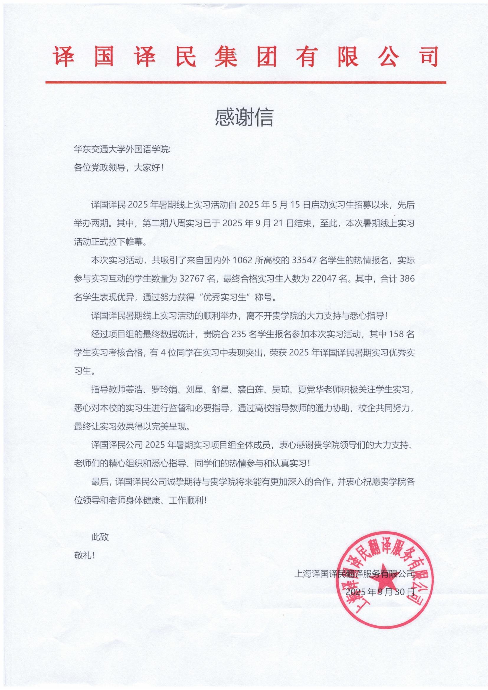 本次实习共有158名员工顺利完成,并获得了译国译民公司颁发的实习证明。同时,公司有7名指导教师荣获“优秀指导教师”称号。