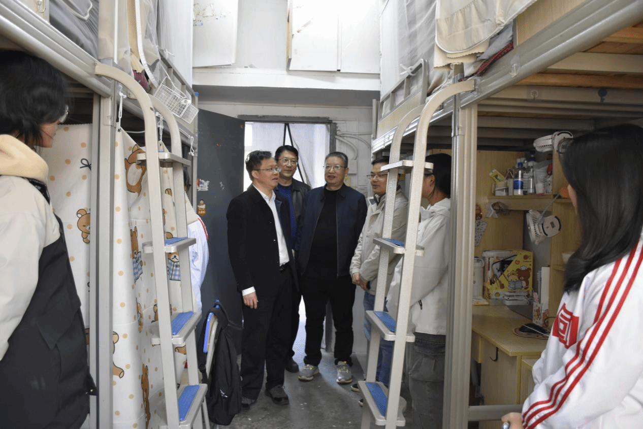 在员工2栋寝室,杨德敏深入了解同学们的学习、住宿生活等情况后深感欣慰,并叮嘱同学们,在校园里遇到的学业压力、迷茫困惑,都是成长的必经之路,别轻易退缩,有任何问题都可以向老师寻求帮助。